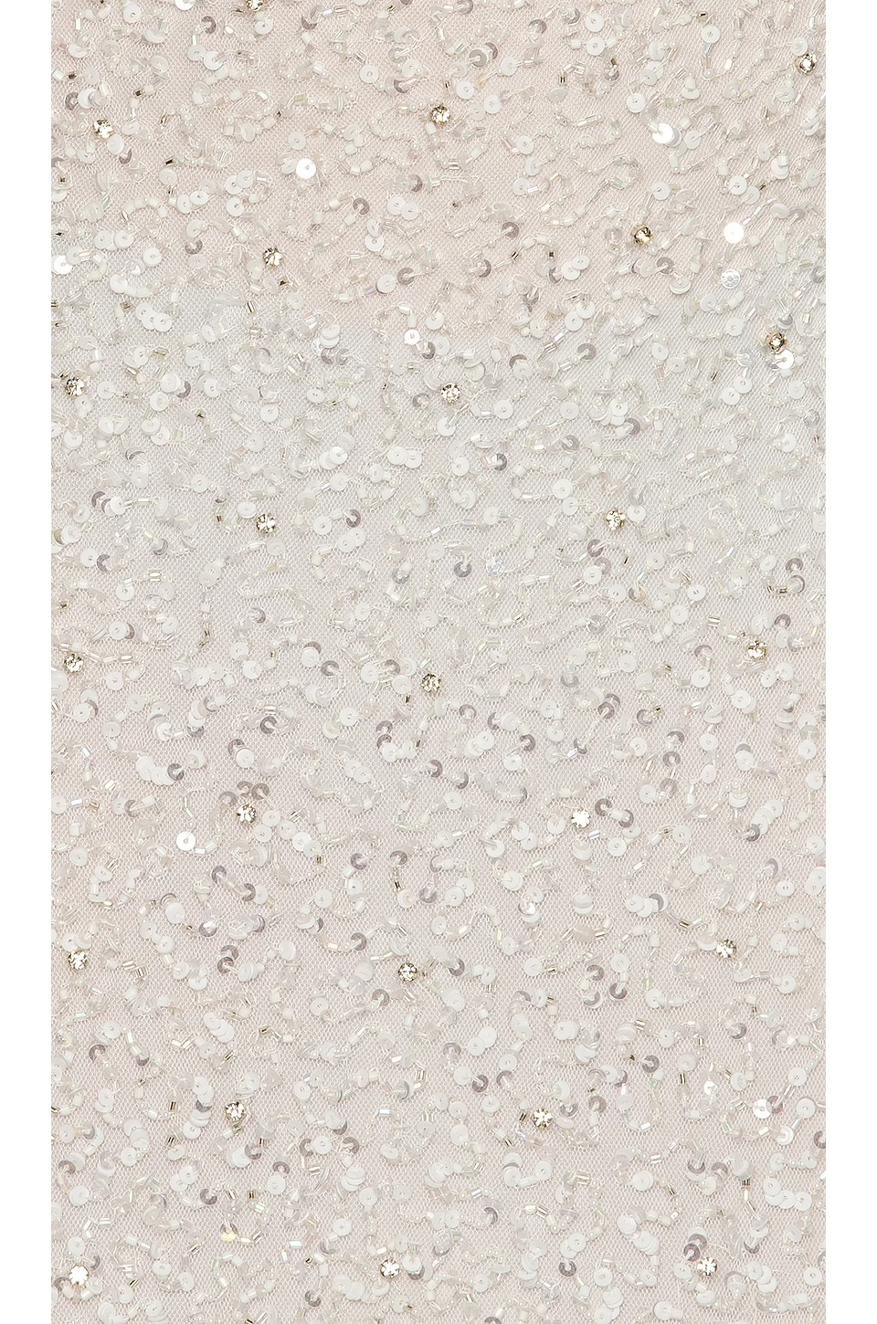 Draped neckline - Embroidered sequin fabric with asymmetric ruffled hem