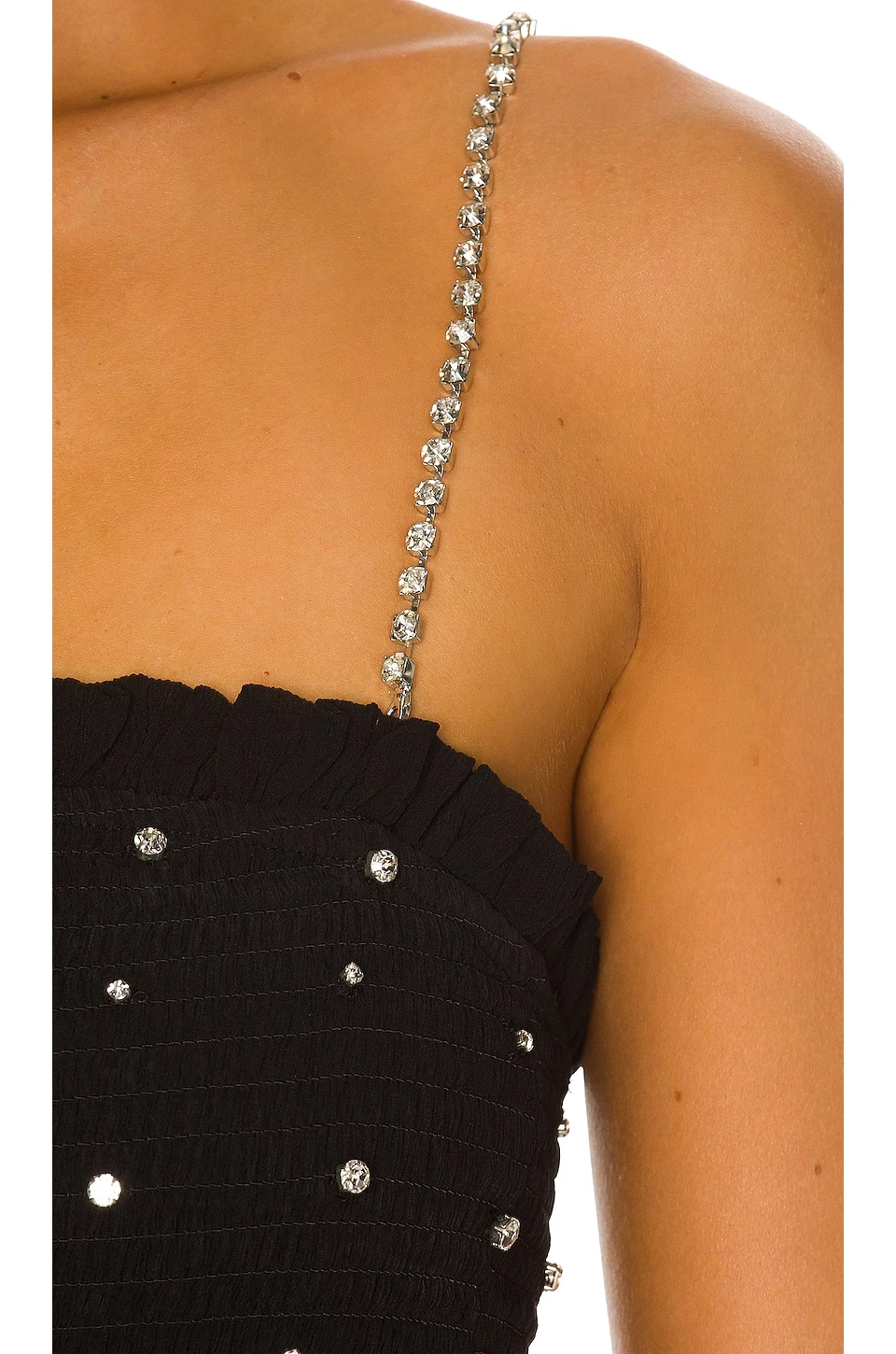 - Smocked elastic fabric with crystal embellished details and surplice hem
