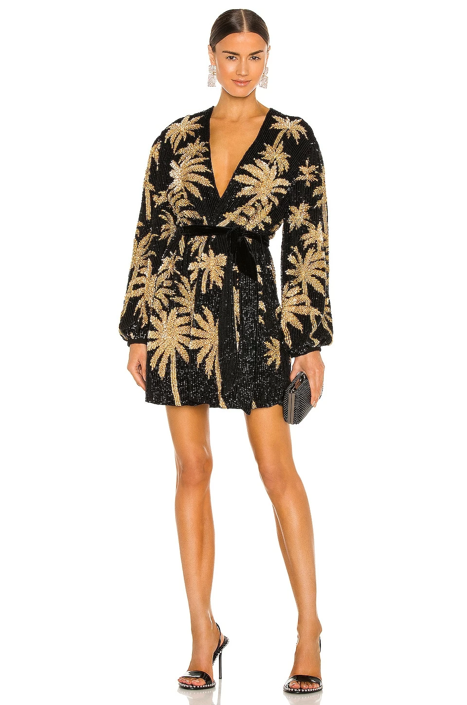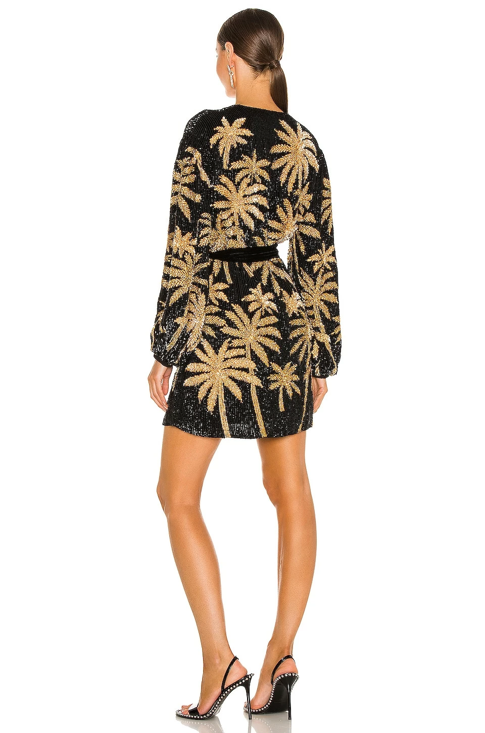 SKU: Embellished & Sequined ROFR-WD136 Categories: Dresses, Embellished & Sequined Tags: Black & Gold Palm, Black Dresses, Cocktail Dresses, Embellished & Sequined Dresses, Long Sleeve Dresses, Metallic Gold Dresses, Mini Dresses, Retrofete, Sequins, Tie Waist, Tropical, Wrap Dresses