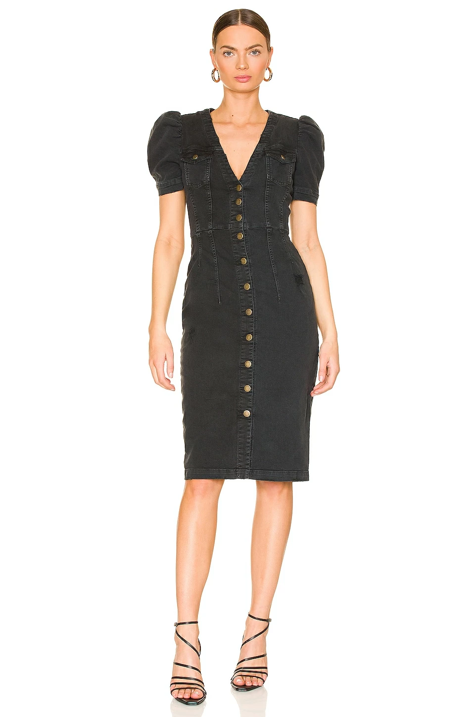 SKU: Short Sleeve ROFR-WD258 Categories: Dresses, Short Sleeve Tags: Black Dresses, Denim Dresses, Jet Black, Midi Dresses, Retrofete, REVOLVE Exclusives, Short Sleeve Dresses